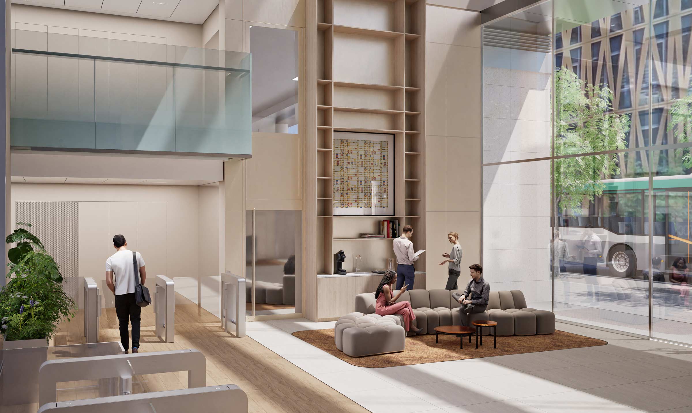 Le hall de JIN impressionne par ses volumes généreux, ses matériaux nobles et son ouverture sur la ville. Sa hauteur sous plafond et son design élégant offrent une expérience fluide et lumineuse. Véritable espace de transition, il incarne confort, modernité et raffinement dès l’entrée.